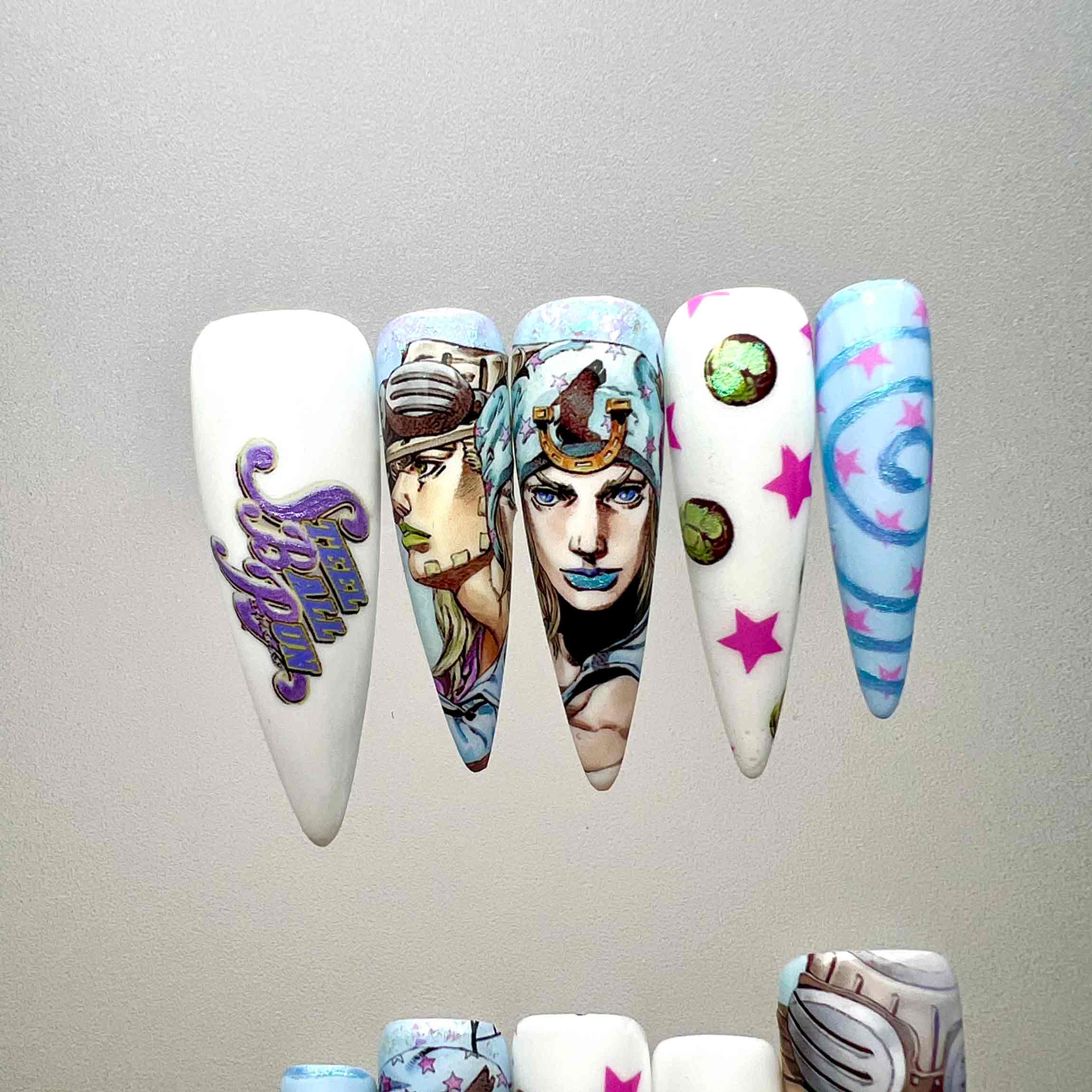 Steel balls spin, stars blaze. Johnny. Gyro. On nails.